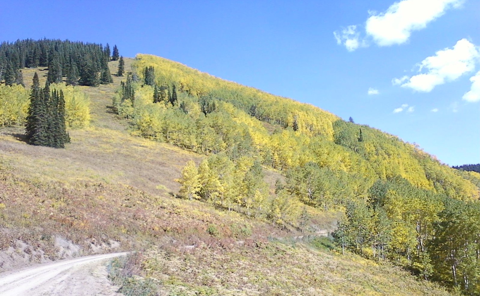 A new adventure! Despite having lived here for 14 years now I have never gone up to Lenado. Lenado lies in a valley between Aspen (Roaring Fork) and the Frying Pan valleys. So we went up past Lenado on a public road and saw some truly beautiful fall colours. From the top of a hill we could see the ski runs on Aspen Mountain and the ski runs on Aspen Highlands plus also Pyramid Peak and the Maroon Bells! Looking further downvalley we could also see Capitol Peak and Sopris Mountain. Even for this area that is just a truly amazingly breathtaking view!