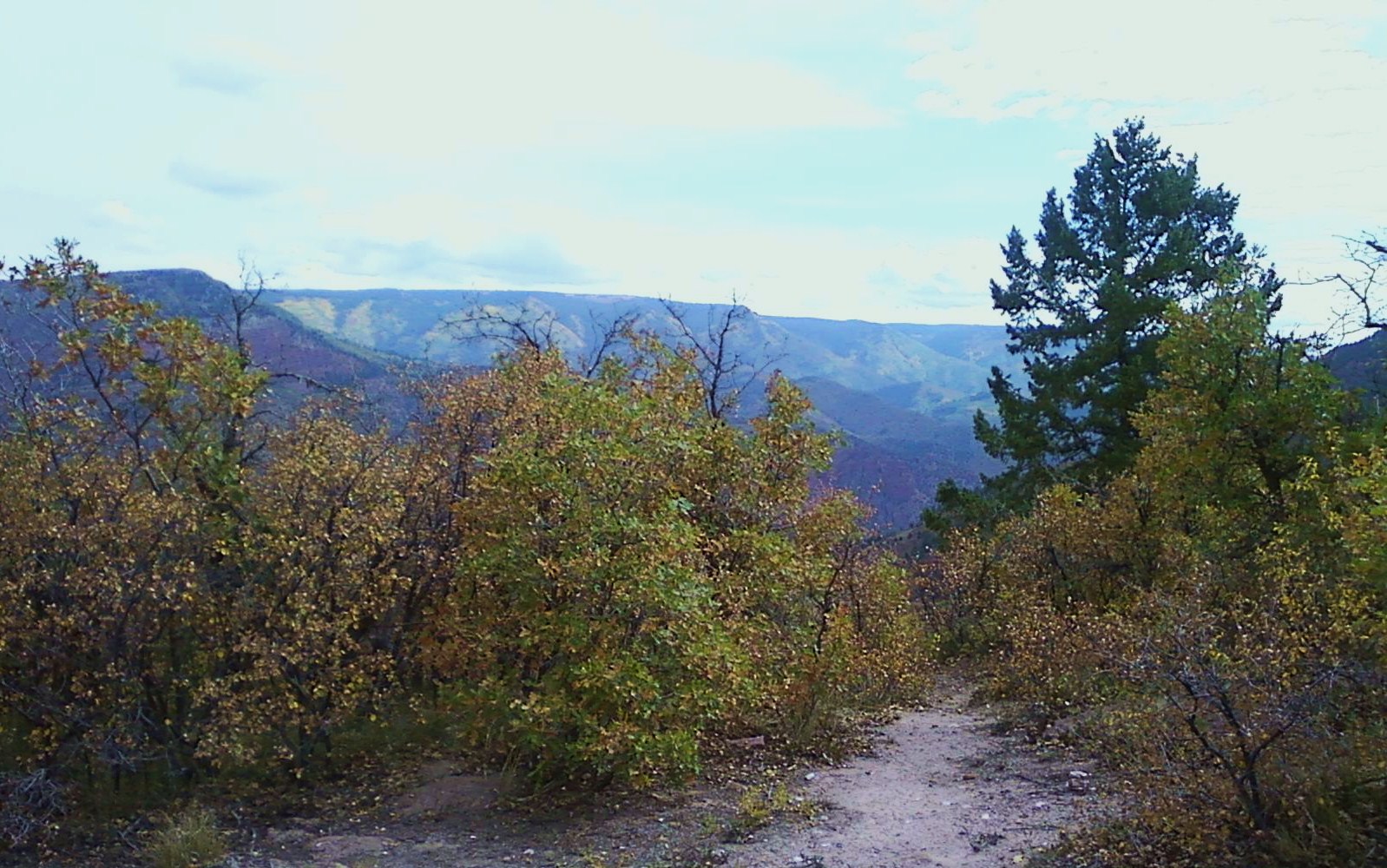 Beautiful fall mornings have been taunting me since I injured my toe two weeks ago and I can’t hike very well in flip-flops! So today I gingerly put on my trail shoes and headed up Arbaney Kittle. Sheila (my dog) was ecstatic about getting out for a hike! The colors are really beautiful on the hillsides with the scrub oak in all its fall finery. I took this picture in the opposite direction from which I normally photograph so this is looking into the Frying-Pan Valley and towards Red Table Mountain. You can see the tapestry of color on the slopes of Red Table Mountain – lots better in real life – I think my cell phone camera is wearing out!
