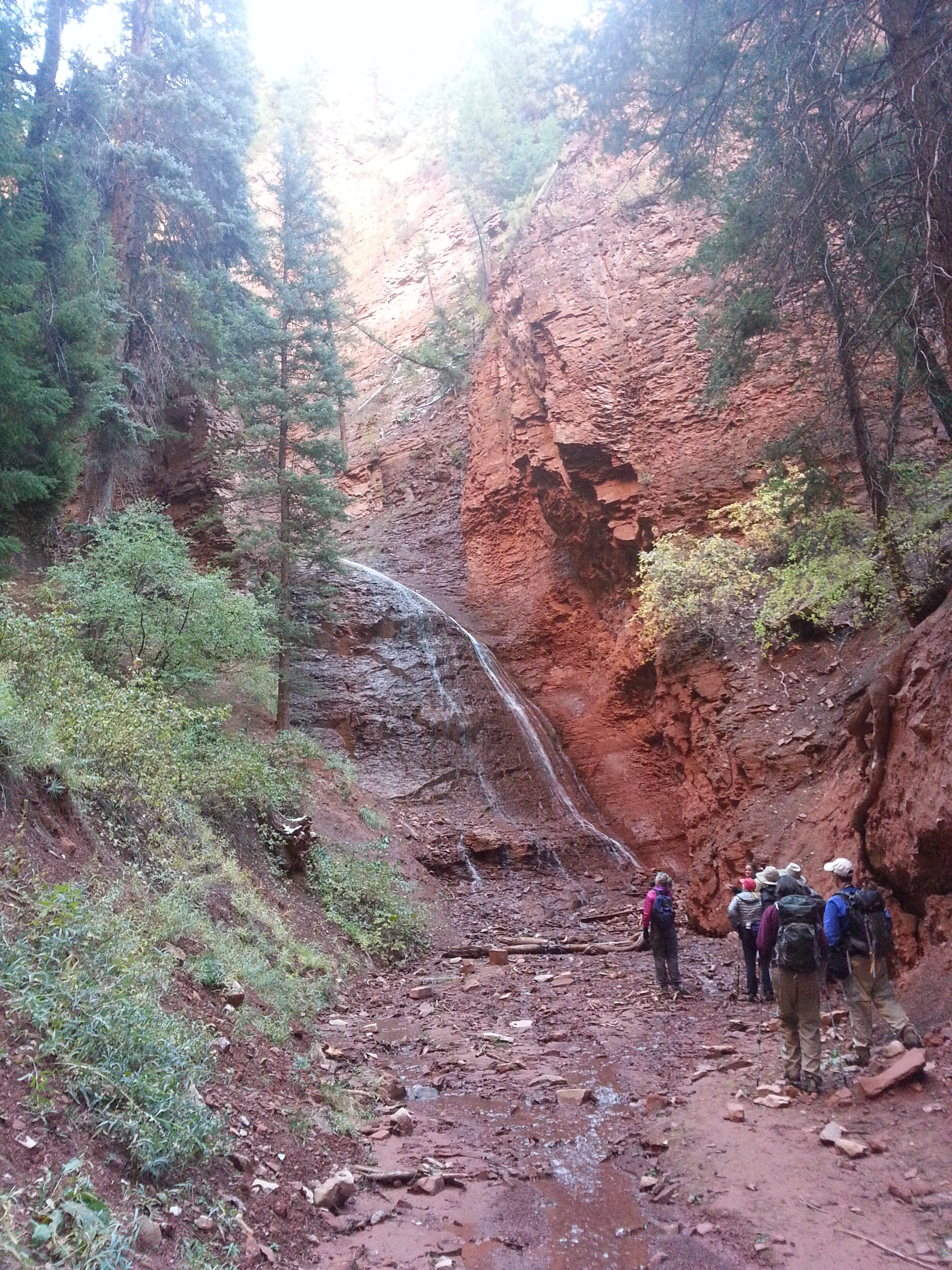 I have wanted to do this hike for a long time but wasn’t exactly sure of how to get to the trail! Seven Castles lies about 5 miles up the Frying Pan river from Basalt (which is about 18 miles from Aspen). It is so named because of the cliff formations in the area which may be seen from the Frying Pan road. This hike was my third attempt this summer as the Wilderness Society were sponsoring hikes and they knew how to get there! The first two times I tried the hike was fully booked and then cancelled due to flash flooding risk so I was very excited to finally go! It is amazing how different the countryside is back here – sort of like Utah – with narrow canyons (mountain lion country) leading to beautiful waterfalls. We were even fortunate enough to see a flock of bighorn sheep who crossed the trail ahead of us. They posed for photos but mine did not turn out well enough to put up here!