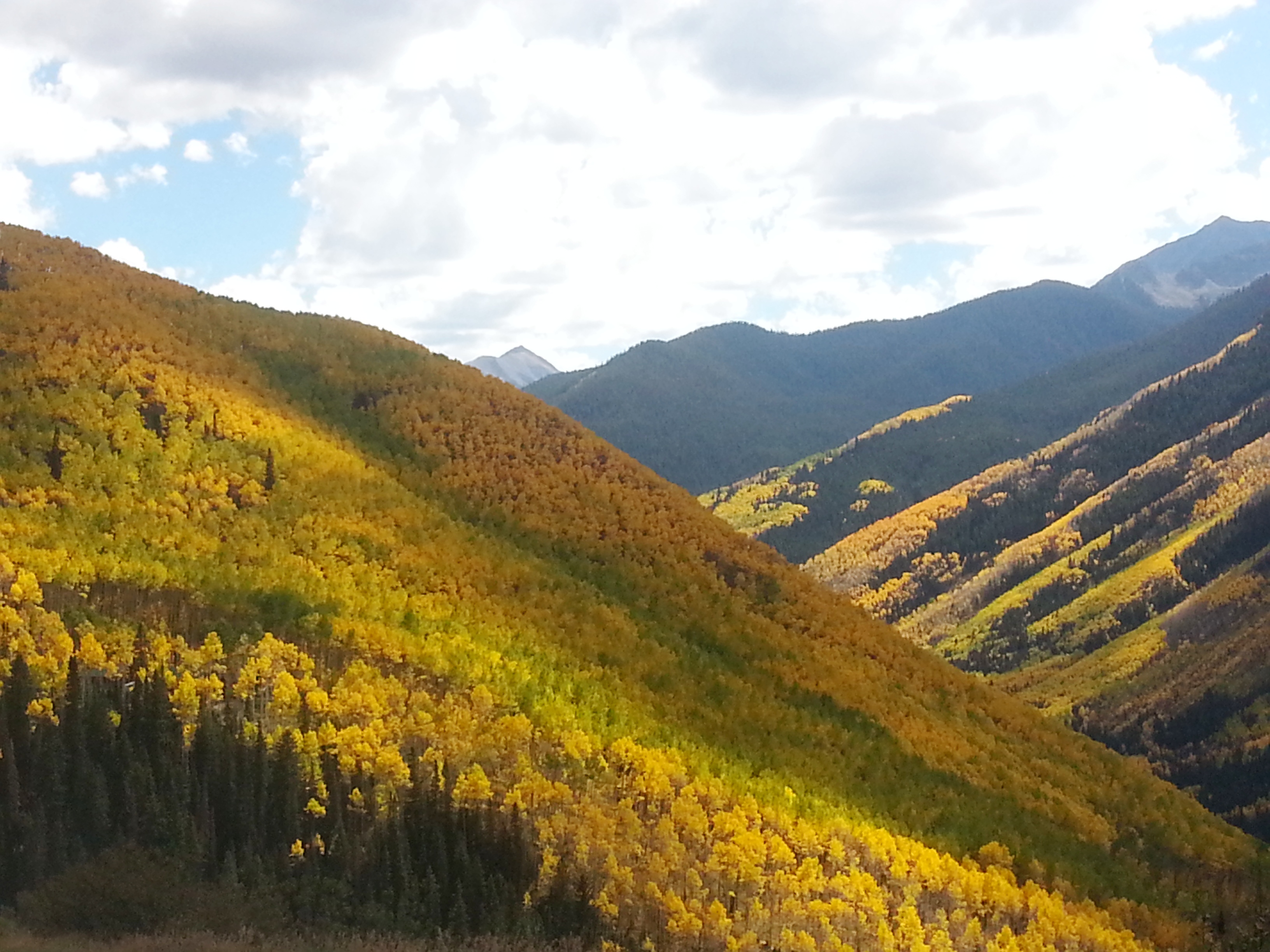Our backyard is so beautiful. We had thought about driving back to Crested Butte to see the changes in this week of cooler weather but then two friends of mine were heading up Castle Creek road so I jumped in with them! This road leads off the roundabout on the way in to Aspen, goes past the hospital and then continues for another 11 miles or so ending just after the ghost town of Ashcroft and the Pine Creek Cookhouse. This is the road that one takes to get to the trailheads for American Lake, Cathedral Lake and Conundrum. It is also the way to 4WD roads to Taylor Pass and Pearl Pass. The fall colours were so spectacular that I came back again the next day and drove up the back side of Aspen Mountain for the views up higher!