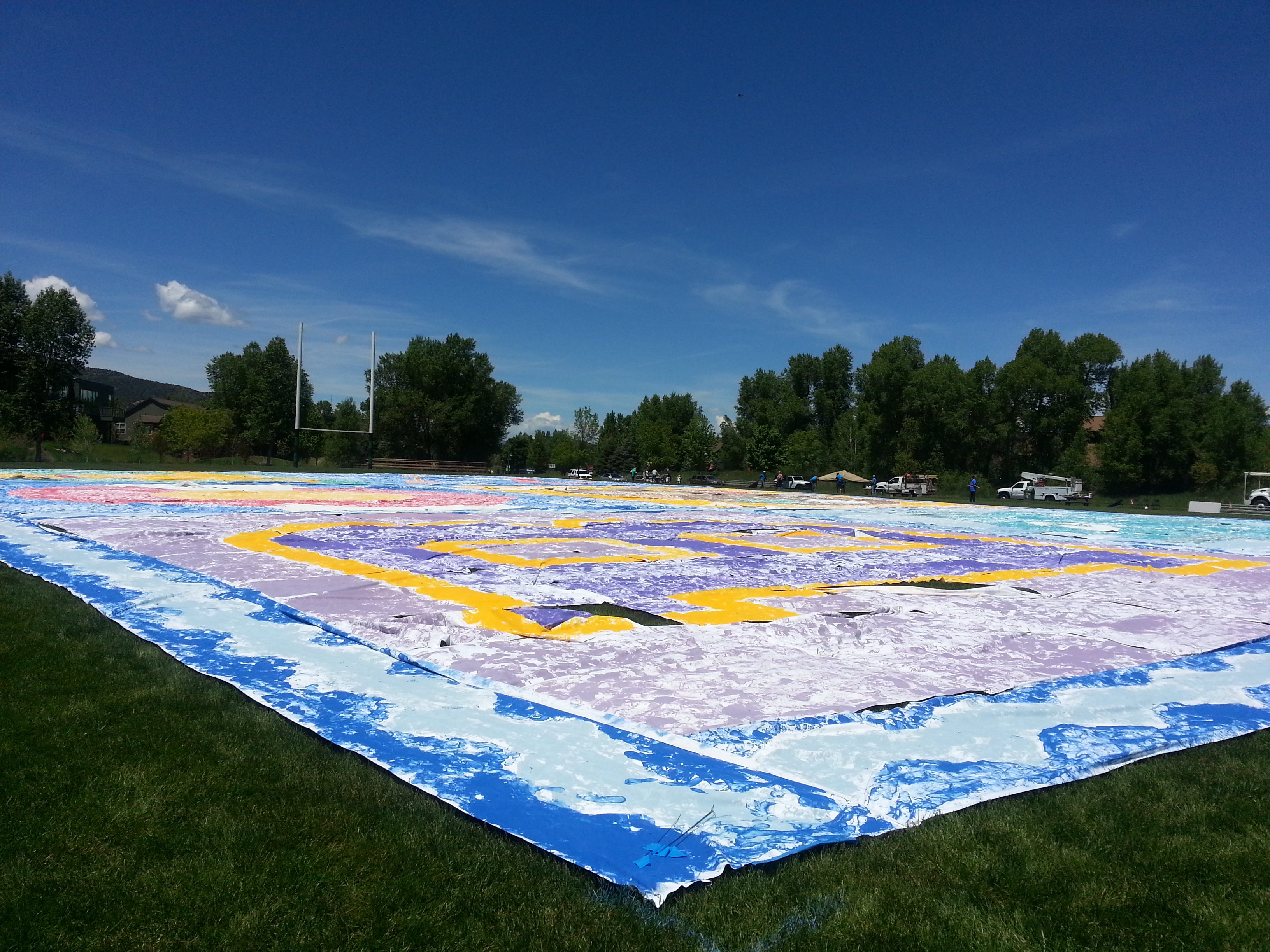 A fun community event! In an attempt to set a ‘Guinness Book World Record for the Largest Painting Made Entirely of Footprints’ Basaltines turned out on May 30th at the Willits Rugby Field to see the 560 panels assembled into the finished product. I am not sure if the attempt was successful but much fun was had by all 🙂