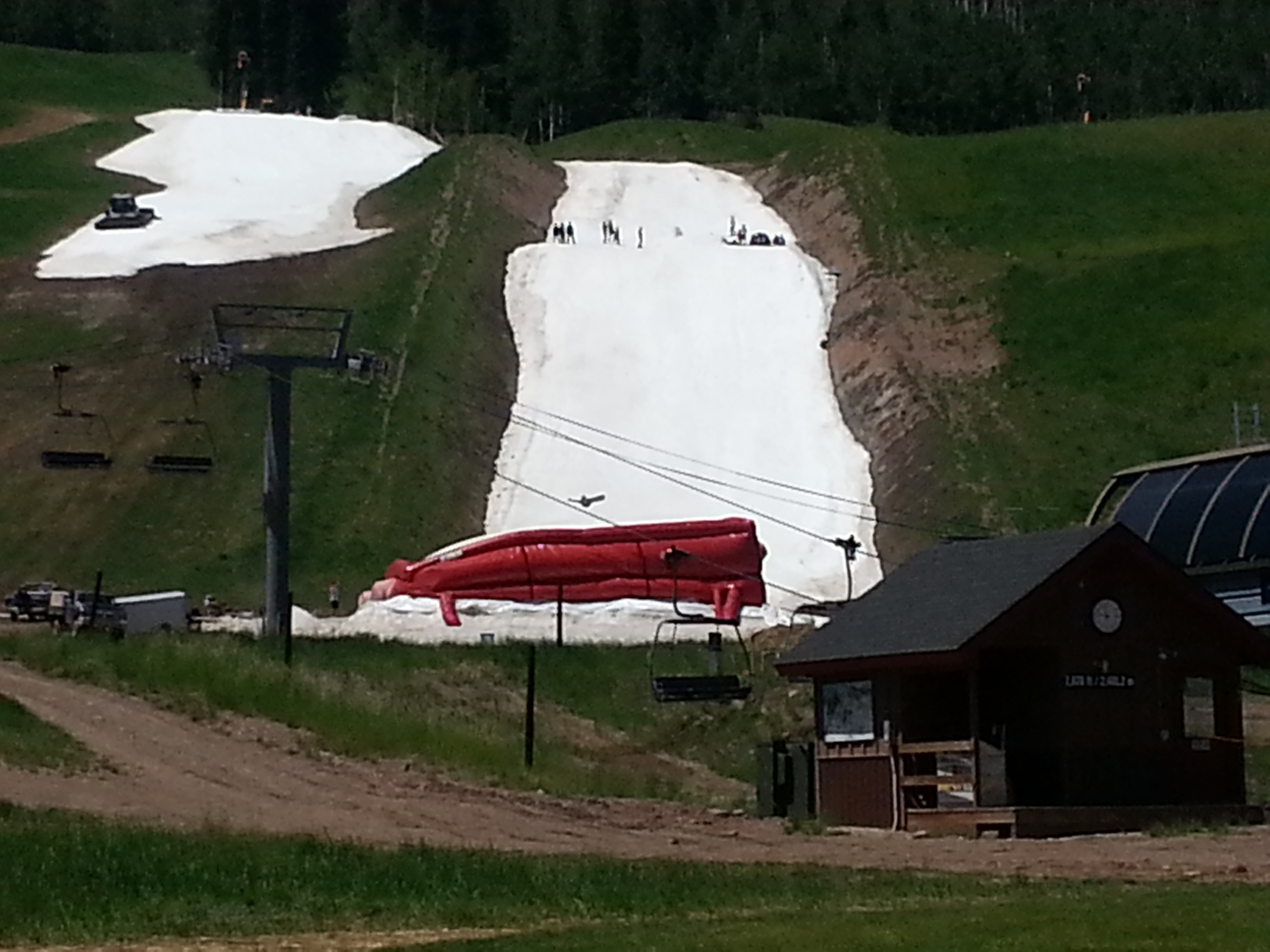 This is awesome! Instead of paying tons of money to travel to train on snow the kids at Aspen Valley Ski Club get to have day camps on the X-Games snow at Buttermilk right by Aspen!!!! They all pile into a truck which drives them up the dirt road to the top of the snow, Then they get out, click in, and ride down to the mogul course and jumps, practicing their tricks into the air bag at the base – wow! As a mum to a competitive mogul skier this is so great for us 🙂